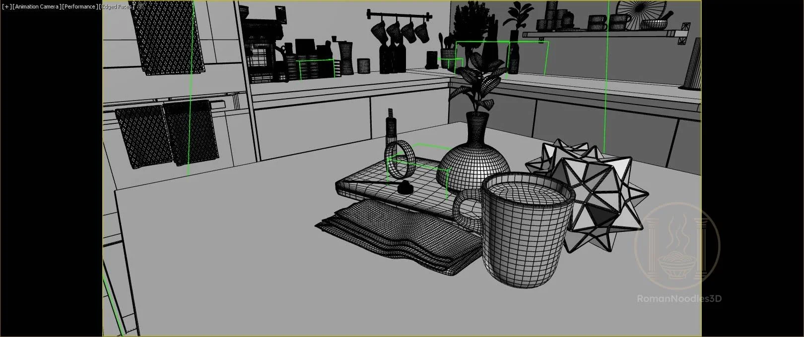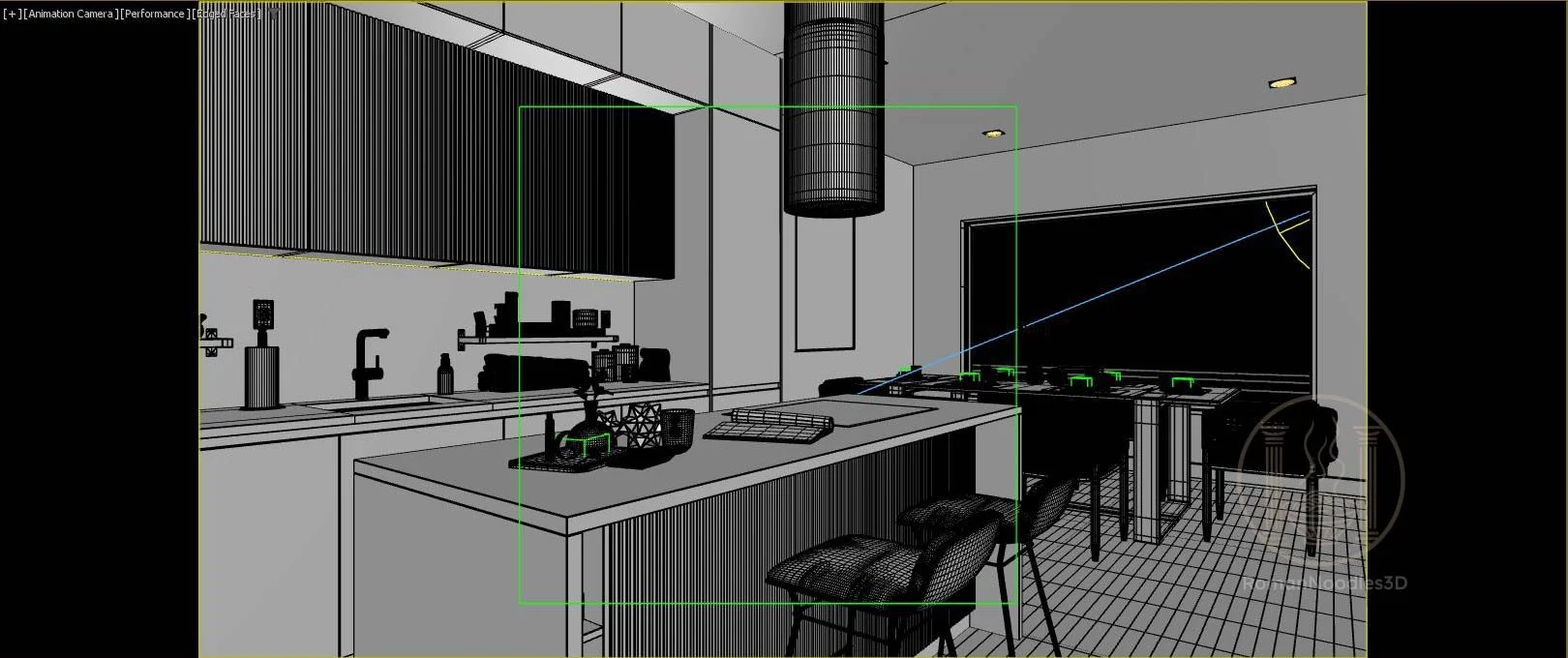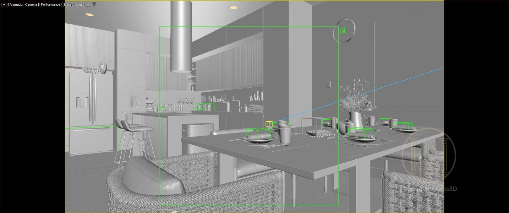 Camera & Composition: Set up animated camera paths and composed shots to best showcase the space.